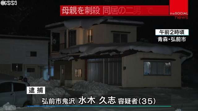 Adalah HM, 35 tahun, yang menusuk ibunya, E, 62 tahun, di rumahnya yang terletak di Onizawa.