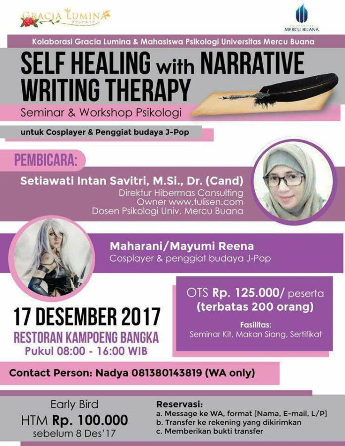 Self Healing with Narrative Writing Therapy for Jpop Enthusiast adalah sebuah kegiatan yang akan memandumu untuk bertahan di tengah cepatnya perkembangan dunia maya.