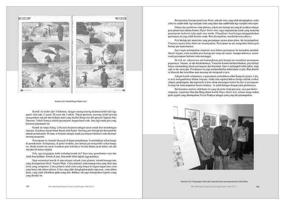 Beberapa komik karya MAN yang dituturkan di buku ini, di antaranya adalah serial Mandala, komikalisasi puisi Hujan Bulan Juni, sampai karyanya di beberapa museum Jakarta, dan masih banyak lagi.
