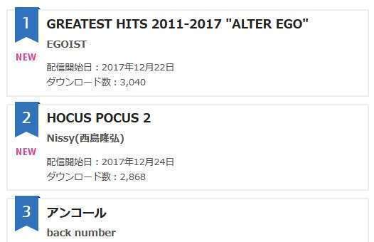 CDは本日発売となります!https://t.co/xe3vXJnLLT#EGOIST #BESTALBUM #ALTER_EGO #Oricon #オリコン— EGOIST staff (@EGOIST_2039) December 27, 2017