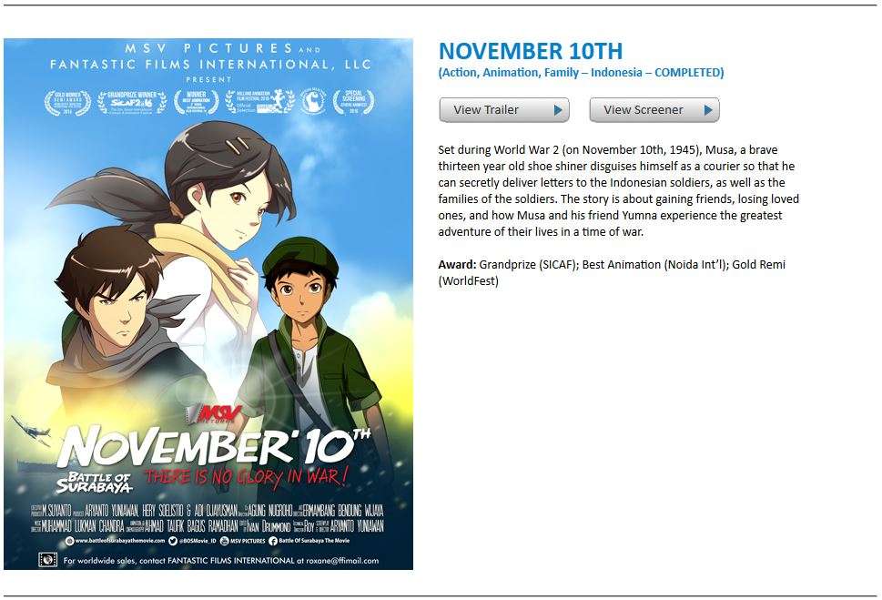 Setelah melanglang buana ke sejumlah negara, hingga meraih berbagai penghargaan di kancah internasional, akhirnya Battle of Surabaya, film berteknologi animasi 2D karya MSV Pictures ini kini telah dirilis secara komersil melalui layanan video Amazon.