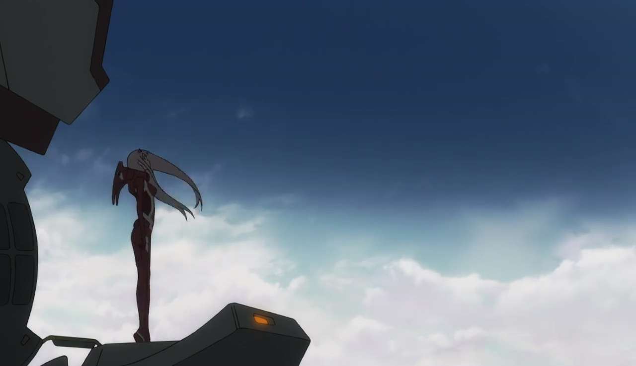 Menit-menit awal DARLING in the FRANXX dimulai dengan monolog dua karakter utama, Hiro dan Zero Two, tentang seekor burung mitos dari Tiongkok, burung Jian. Burung Jian merupakan makhluk yang digambarkan hanya memiliki satu mata dan sayap. Untuk bisa terbang, mereka harus mencari terlebih dahulu pasangannya untuk saling melengkapi satu sama lain, sebelum akhirnya bisa terbang.