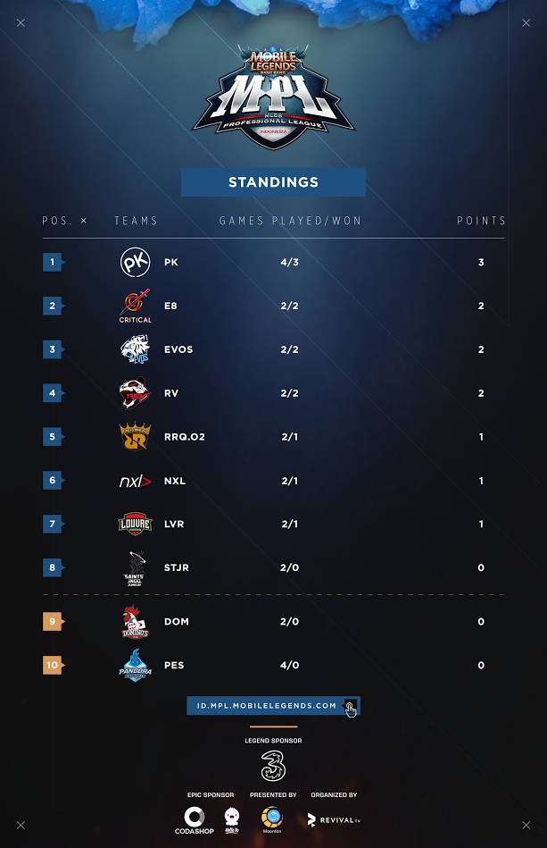 Domino dan Pandora Esports berada di posisi yang berbahaya karena menjadi 2 tim terbawah di minggu pertama kemarin.