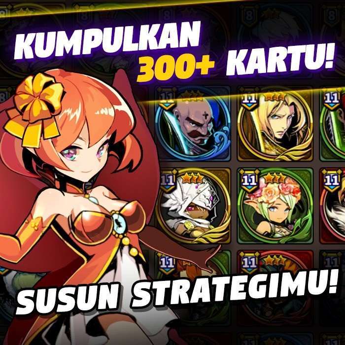 Salah satu fitur utama adalah, pemain dapat membuat dek yang terdiri dari 15 kartu. Terdapat 300 kartu yang nantinya akan bisa didapatkan dan tiap-tiap kartu memiliki skill yang unik, kemampuan kuat dan tentu saja ilustrasi yang indah. Kartu-kartu ini terbagi menjadi 5 tipe dan dapat dikombinasikan dengan berbagai cara untuk menciptakan tim terkuat. Pemain juga dapat melakukan upgrade pada dek kartu mereka dengan level up, evolusi, limit break, kombinasi kartu dan memasang rune pada kartu.