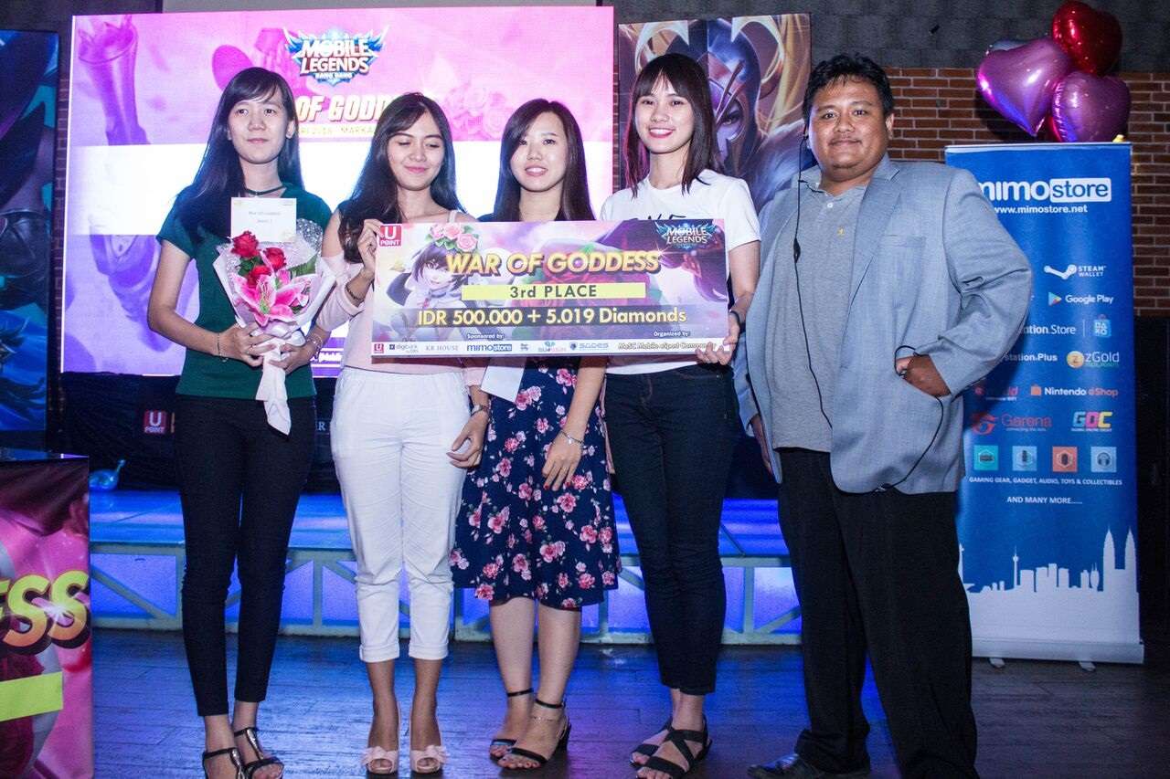 Pada Ladies Tournament Mobile Legend kali ini, MeSC sudah mempersiapkan hadiah dengan total IDR. 3.000.000 dan 30.000 Diamond Mobile Legend. Dan berikut ini adalah hasil akhir dari War of Goddess Mobile Legends Ladies Tournament.
