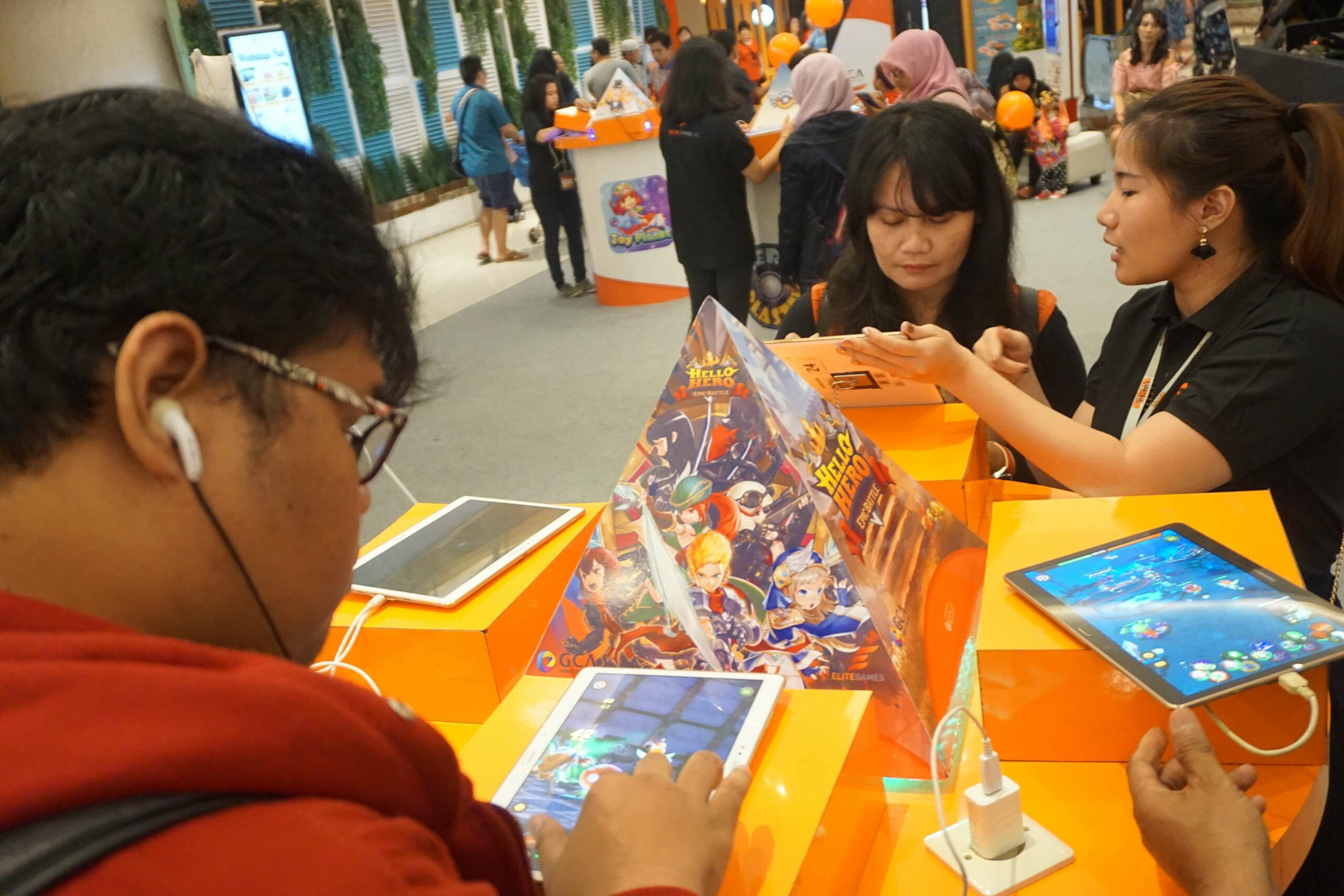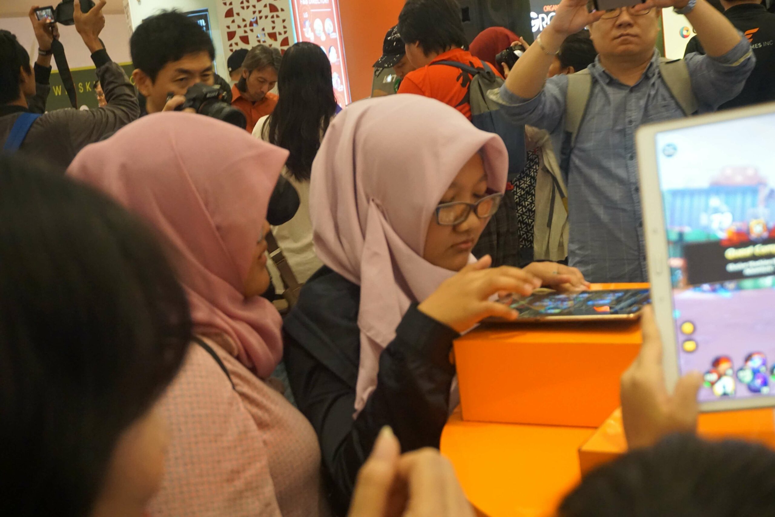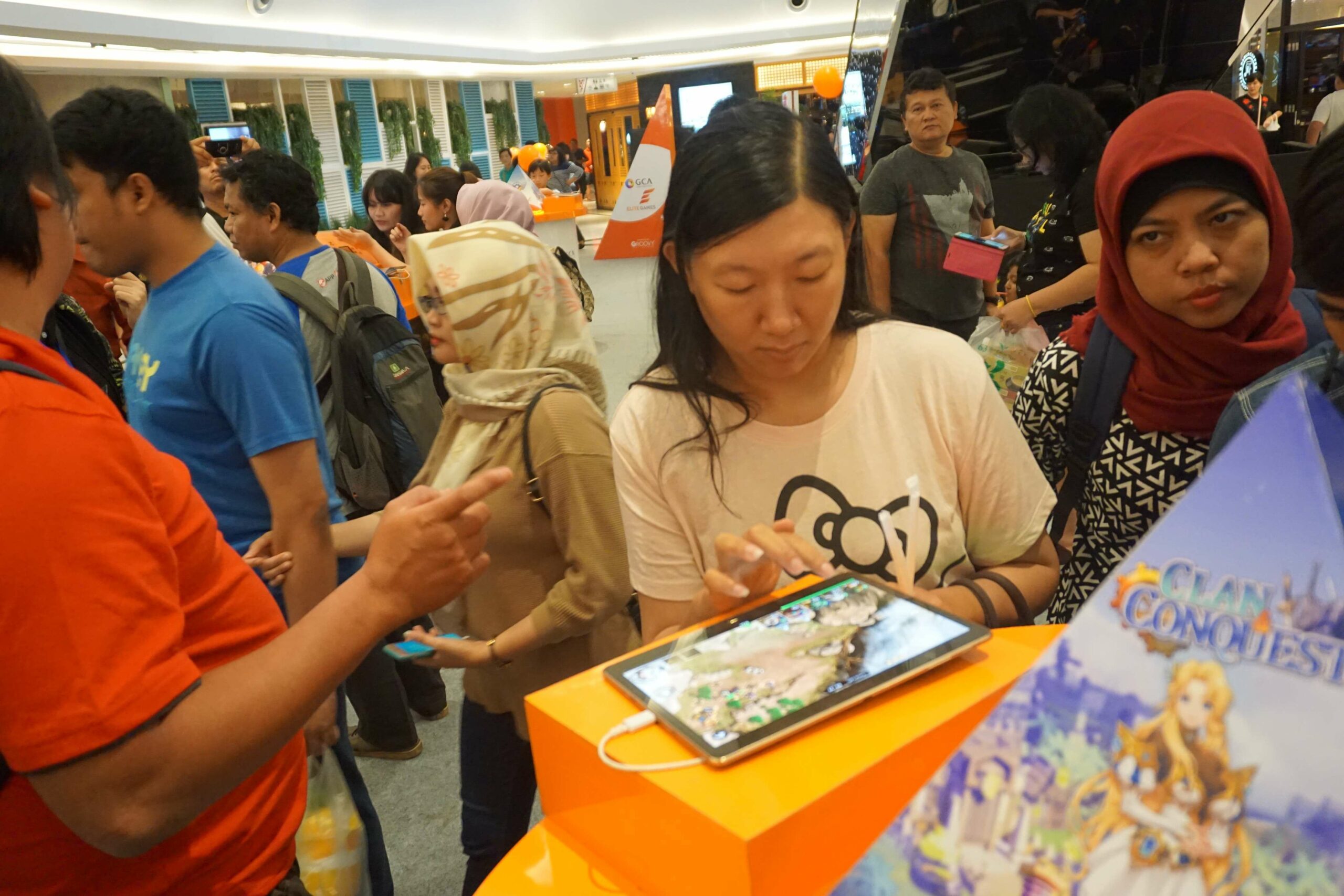 Para pengunjung yang hadir langsung bergegas mencoba berbagai mobile game yang berada di lokasi. Berikut ini beberapa momen yang berhasil staf KAORI Nusantara abadikan pada saat para pengunjung asik mencoba berbagai macam mobile game yang diluncurkan oleh Elite Games Inc.