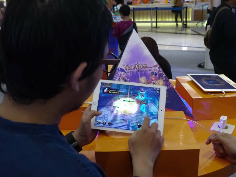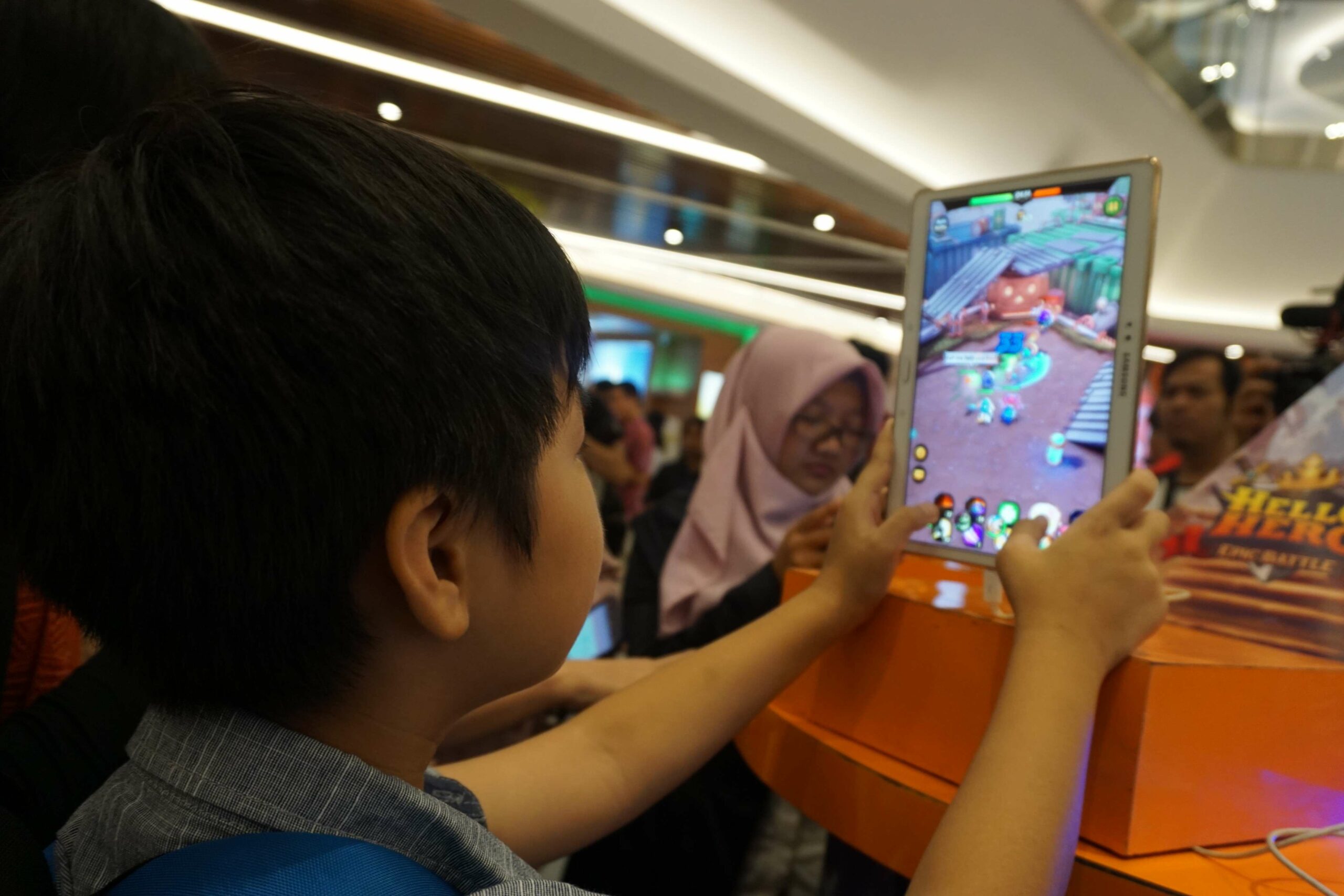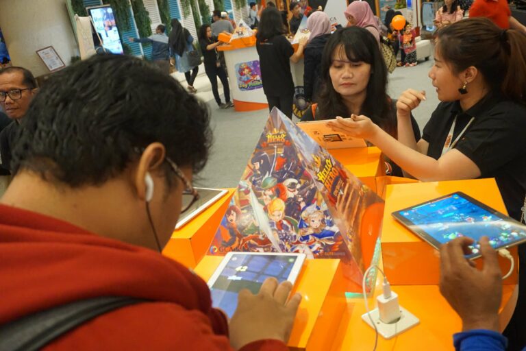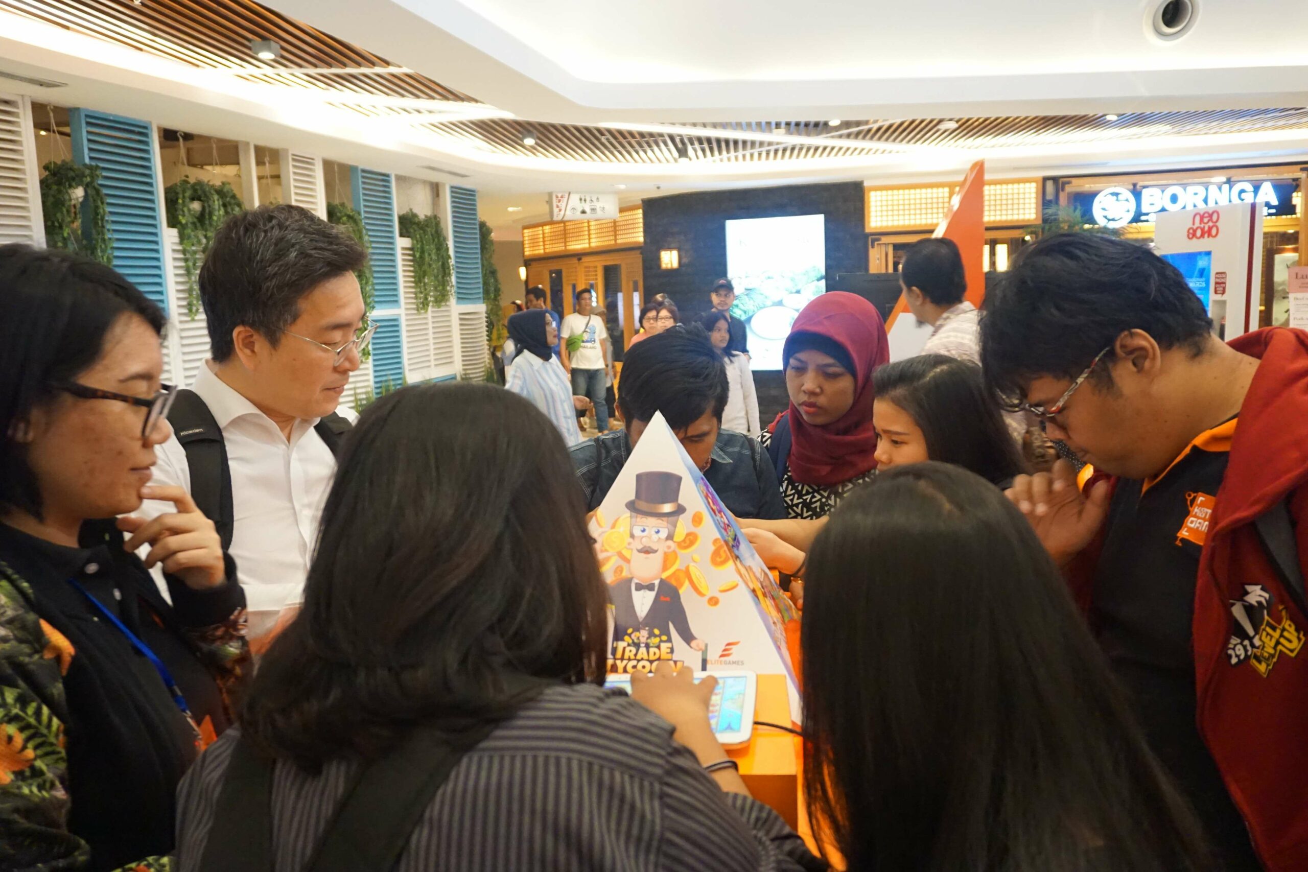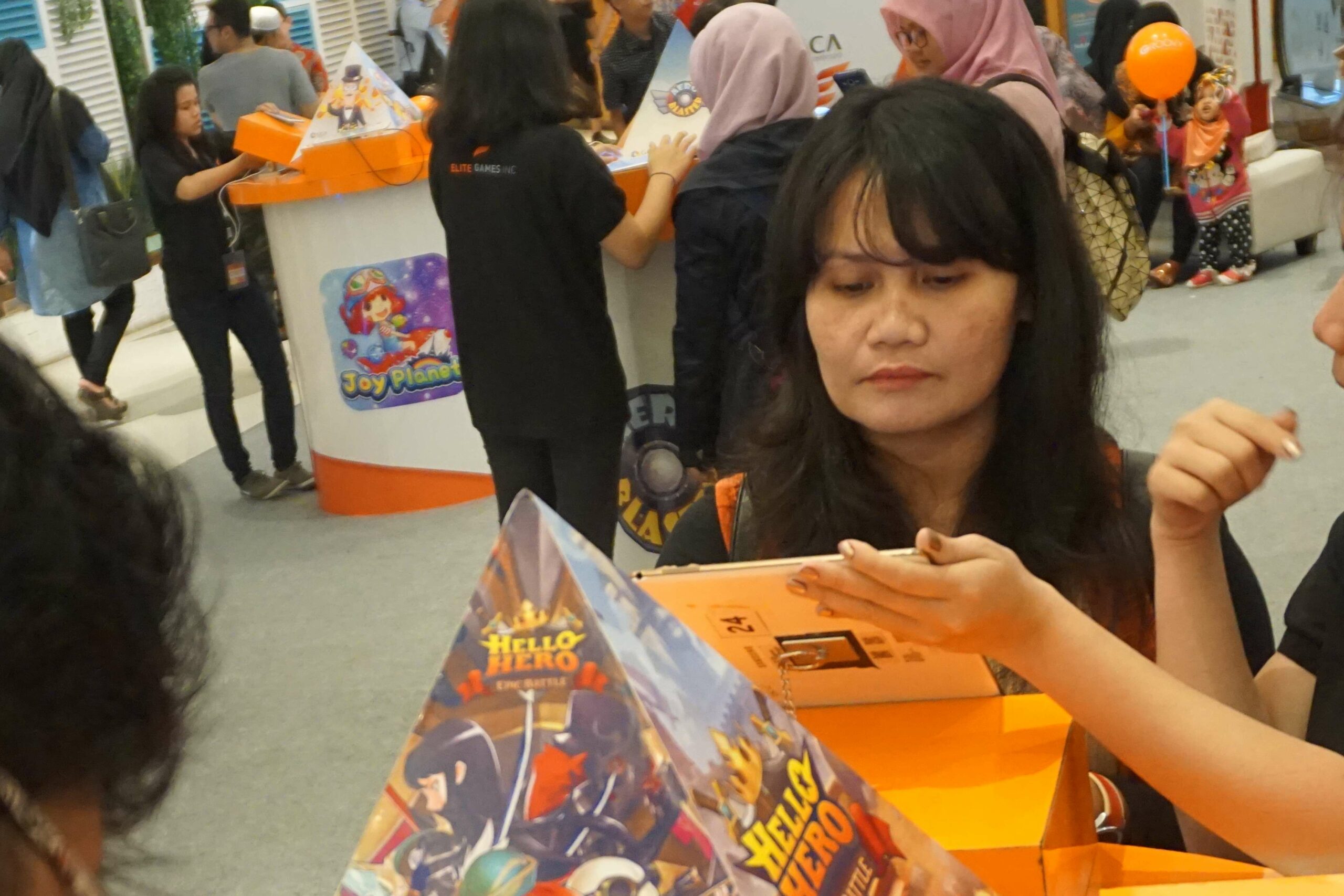 Para pengunjung yang hadir langsung bergegas mencoba berbagai mobile game yang berada di lokasi. Berikut ini beberapa momen yang berhasil staf KAORI Nusantara abadikan pada saat para pengunjung asik mencoba berbagai macam mobile game yang diluncurkan oleh Elite Games Inc.