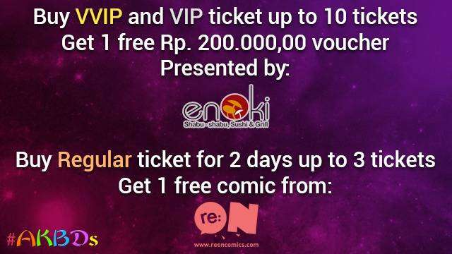 ✪ Tiket VVIP dan VIP hingga 10 tiket akan mendapat 1 voucher Rp. 200.000,00 gratis untuk makan di Enoki Japanese Restaurant
