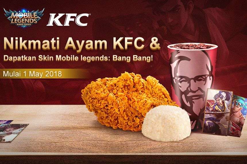 Sebagaimana telah diberitakan sebelumnya, mulai 1Mei 2018, para pemain game MOBA Mobile Legends: Bang bang bisa mendapatkan kesempatan untuk mendapat skin premium hanya dengan memesan Kombo Meal eksklusif dari KFC.