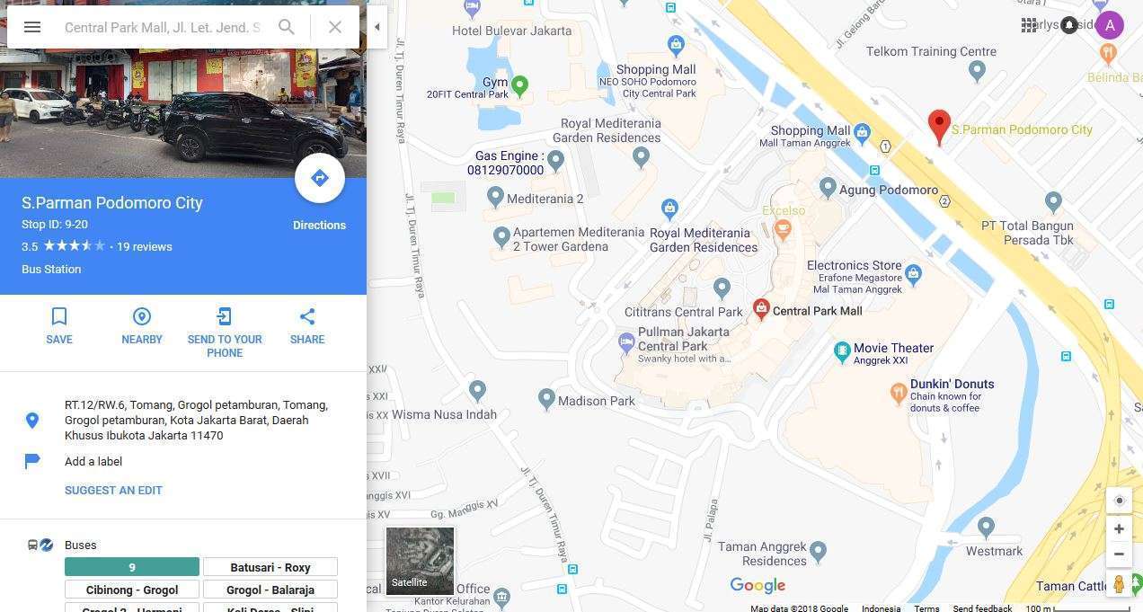 Lokasi Halte S.Parman Podomoro City dan Central Park.