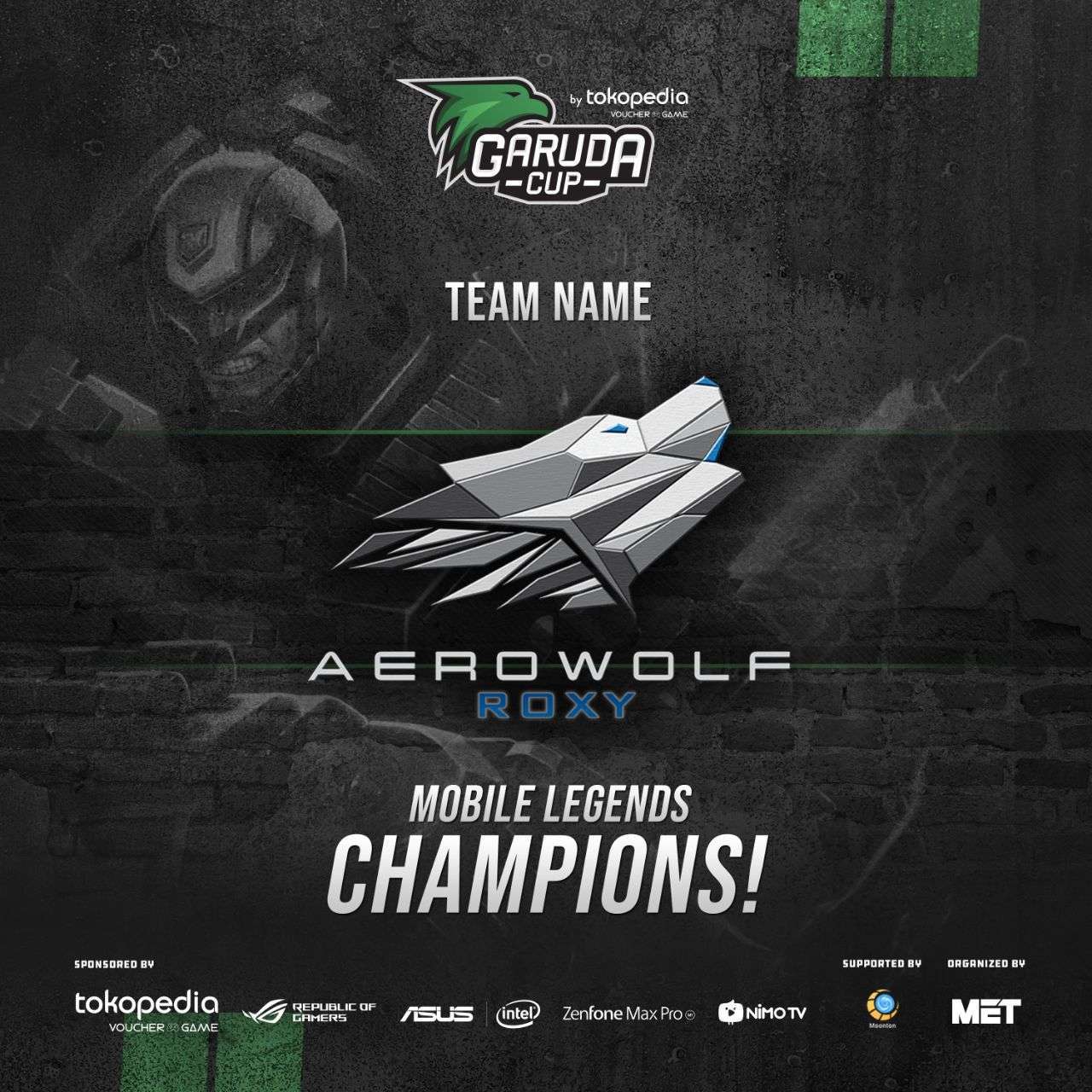 Garuda Cup by Tokopedia Voucher Game 2018 resmi mendapatkan squad tim juara dari kompetisi dua kolaborasi game populer di Indonesia, PUBG dan Mobile Legends Championship berskala nasional yang berlangsung di Mall Taman Anggrek, Jakarta. Sang juara, Aerowolf Roxy kembali mengangkat tropi Juara 1 dan membawa pulang hadiah sebesar Rp50 juta rupiah dari kompetisi Mobile Legends Championship Garuda Cup setelah mengalahkan RRQ (2:0) pada babak perempat final, Evos Mobile Legend di babak semifinal dan Louvre dengan skor 2:1 di babak final.