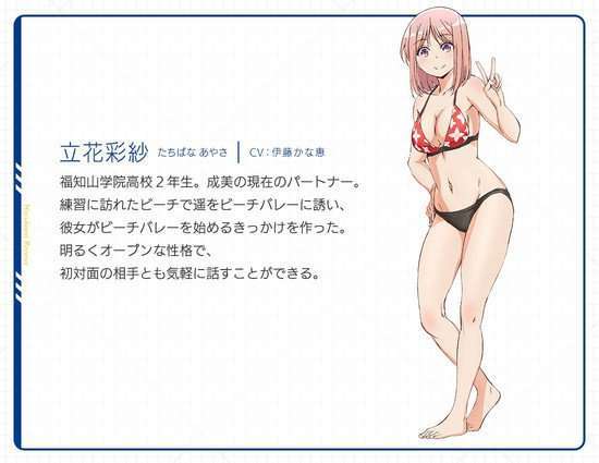 Saki Miyashita sebagai Kanata Higa, sepupu Haruka yang tinggal di Okinawa dan sesama siswi kelas dua SMA. Ia dulunya gemar bermain voli pantai, namun karena tubuhnya yang pendek Kanata akhirnya berhenti bermain. Ia memiliki sifat yang tertutup. Haruka pun akhirnya mengajaknya kembali bermain voli pantai.
