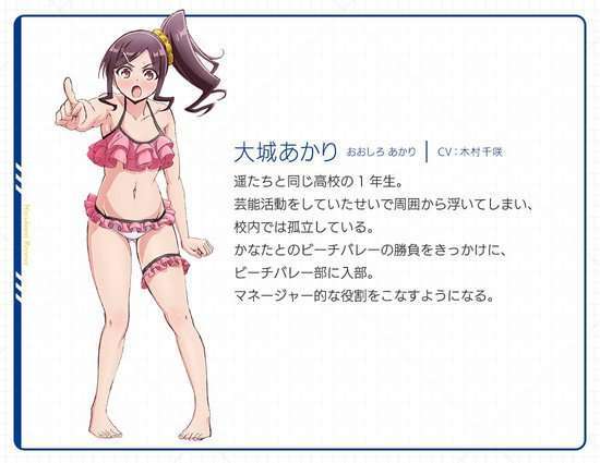 Chisa Kimura sebagai Akari Ōshiro, siswi kelas satu yang juga satu sekolah dengan Haruka. Ia bergabung dengan tim voli pantai sekolahnya dan menjadi manajer untuk timnya.