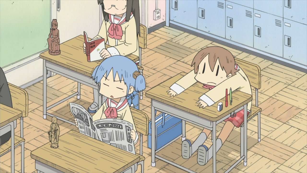 Pilihan pertama jatuh kepada anime komedi-absurd berjudul Nichijou, di mana 17 responden merekomendasikan judul ini. Dalam anime produksi Kyoto animation pada tahun 2011 ini dikisahkan mengenai keseharian berbagai macam tokoh yang dapat dikatakan sedikit out of the box. Beberapa komedinya memang masih sulit ditangkap oleh pemirsa Indonesia, namun secara umum memang cukup menghibur. Cerita yang terbilang santai, lucu, dan minus adegan vulgar menjadikan anime lama ini cukup layak untuk ditonton kala menanti waktu berbuka. Sebagaimana yang dikatakan oleh sebagian responden: