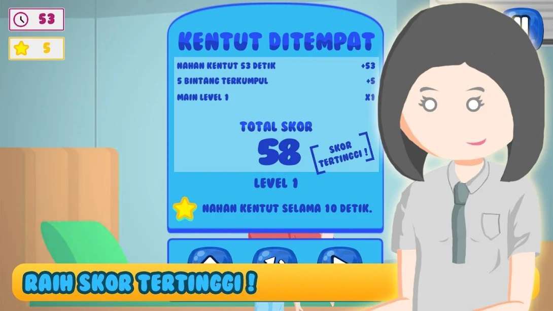 - Nahan kentut selama mungkin, semakin lama menahan kentut semakin banyak skor diperoleh. Juga membuktikan anda jago menahan kentut di kehidupan anda.