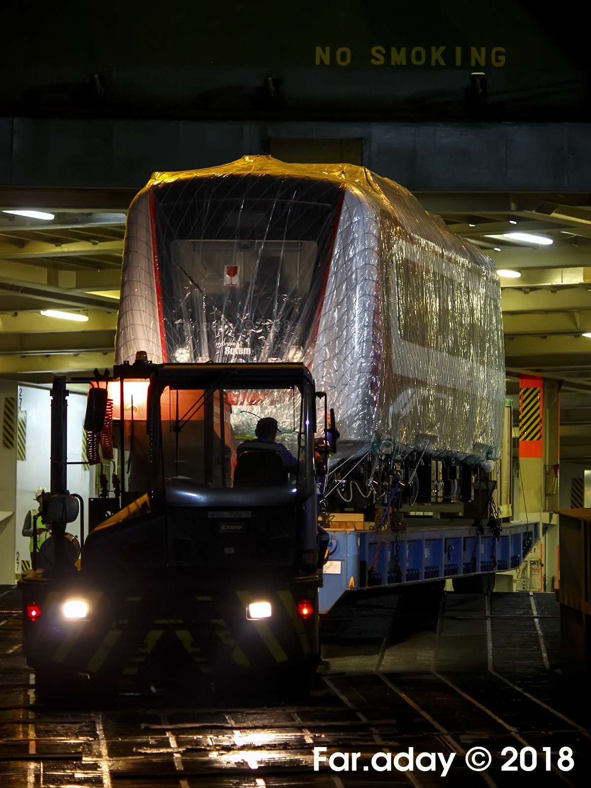 Sama seperti pengiriman rangkaian perdana, kapal yang digunakan adalah kapal jenis Vehicles Carrier berbendera Singapura, Turandot. Walau telah bersandar sejak sore hari, proses bongkaran unit-unit LRV milik LRTJ ini baru dimulai sekitar pukul 19.30 karena harus mendahulukan bongkaran alat berat serta beberapa mobil yang terletak berdekatan dengan pintu keluar kapal. Unit LRV pertama yang diturunkan dari kapal adalah kereta 1104B dari rangkaian TS4. Proses bongkaran tiga rangkaian LRTJ ini berlangsung hingga sekitar pukul 22.30 WIB.