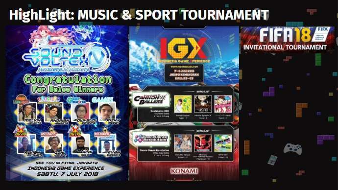 Selain menjadi ajang final dari Indonesia Game Tour 2018 untuk DOTA 2, Point Blank dan Arena of Valor, IGX 2018 juga bekerja sama dengan komunitas gamers seperti ABUGETCUP yang akan mengadakan turnamen akbar game fighting, Pokemon VGC oleh pkmnid, FIFA invitational oleh Indonesia FIFA Community, dan lain sebagainya.
