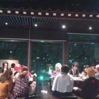 Ketika mulai masuk ke cafe ini, saya disambut dengan nuansa Jepang otentik yang dihadirkan oleh restorannya terasa “memperkuat” tema ninja yang dihadirkan oleh event cosplay cafe ini. Setelah disambut oleh para cast… atau lebih tepatnya para “ninja” dari Desa Konoha dan sekitarnya ketika masuk ke cafe ini, saya kemudian bertemu dengan salah satu cast yang sebelumnya telah saya pilih, Sakura. Dan di sesi yang saya ikuti, ternyata saya tidak sendiri karena saya semeja dengan pengunjung lain yang berasal dari Bekasi. Suasana ketika di sesi yang saya ikuti pun cukup ramai, dengan beberapa pengunjung yang datang juga turut bercosplay menjadi salah satu karakter dari serial Naruto.