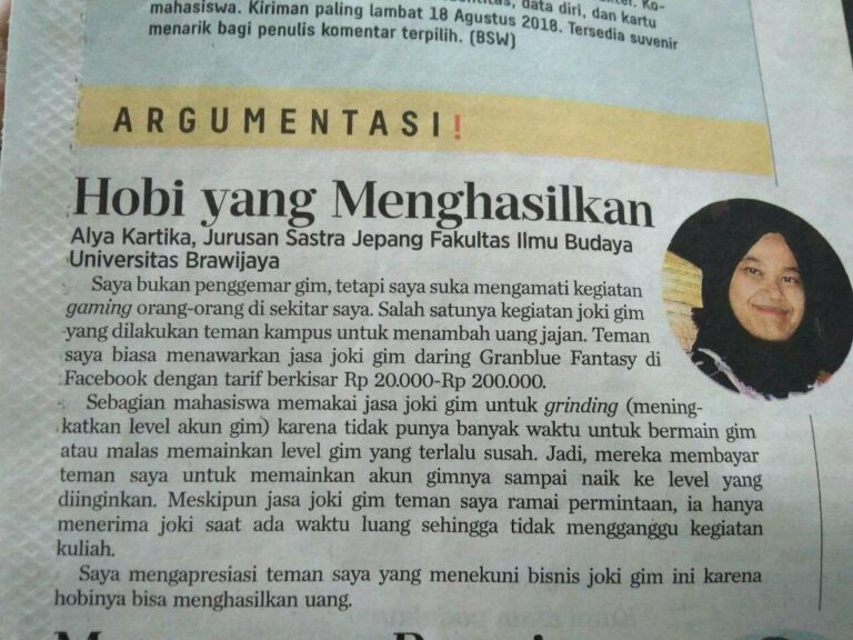 Yang menarik, salah satu judul game yang begitu populer di kalangan penikmat jejepangan ternyata juga turut disinggung di artikel ini melalui kolom “Argumentasi” yang menjaring komentar dari para pembaca rubrik ini.