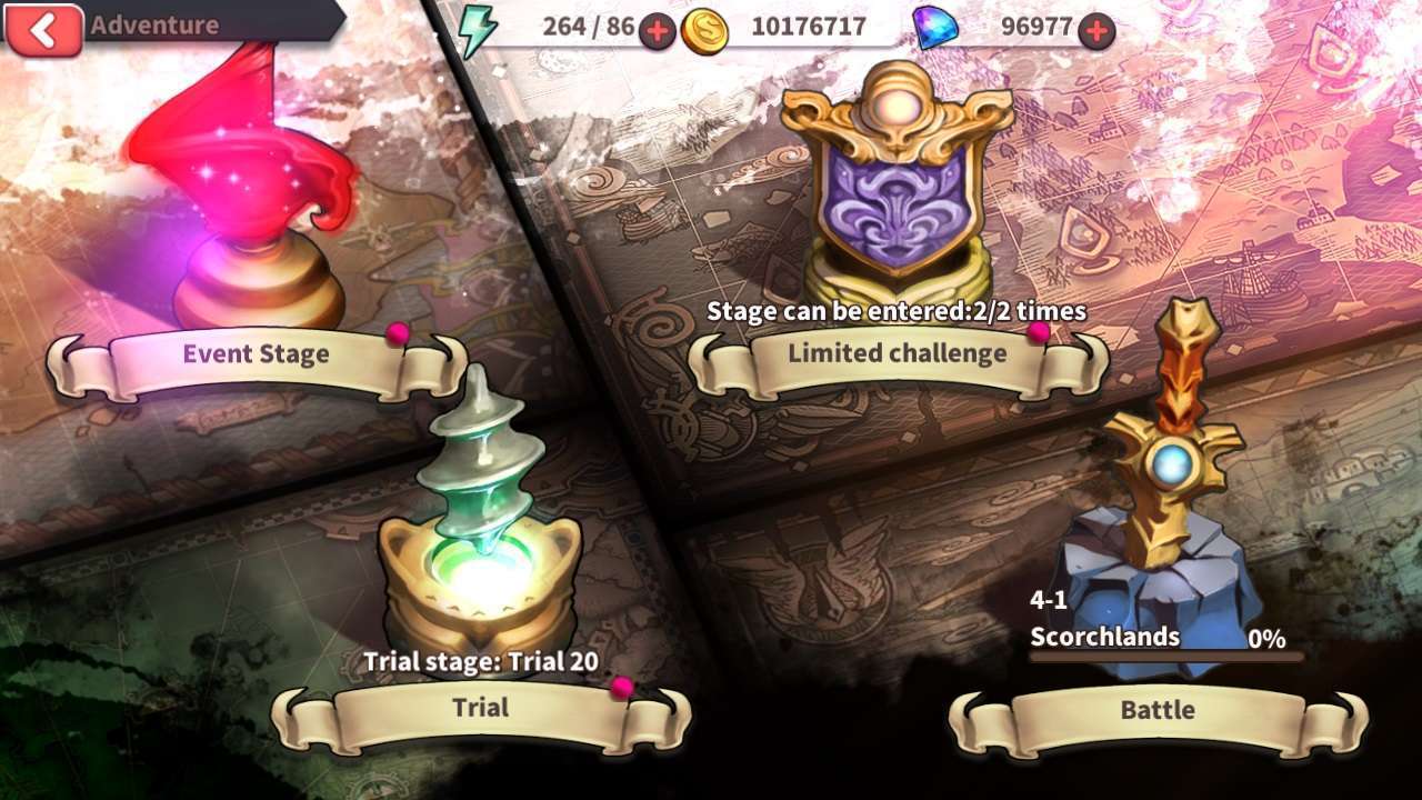 Untuk pertama kali launch, Diosa Force akan mengeluarkan 50 Heroes dengan 6 elemen (wind, earth, Fire, Light, Dark, Typeless) yang dapat dipilih oleh pemain. Dan fitur yang ditawarkan terdapat Event Stage, Limited Challenge, Trial, Battle, Arena Room, Raid Room.