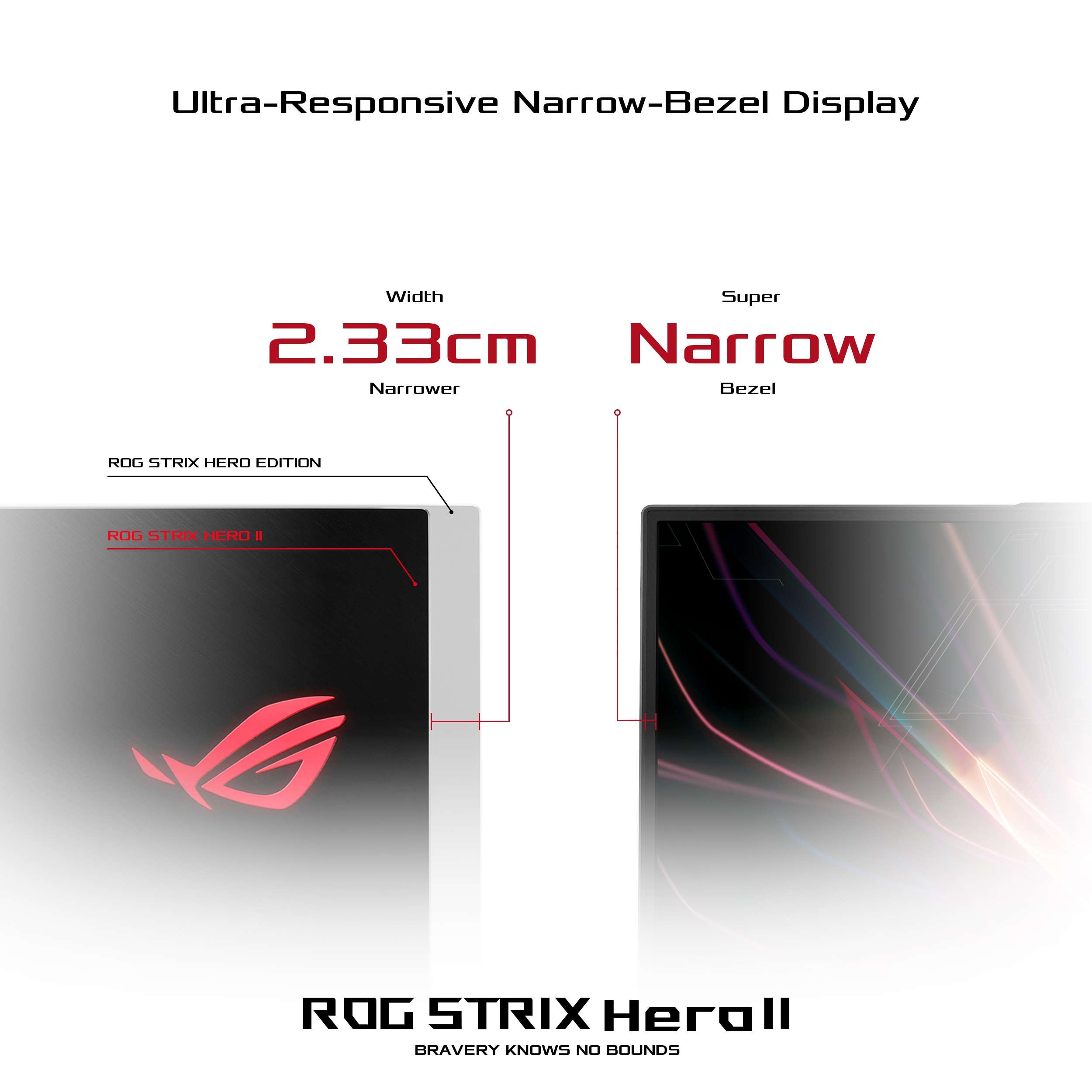 Untuk memberi Anda keuntungan maksimal di dalam pertempuran, ROG Strix GL504 Hero II dan Scar II menampilkan layar bezel super tipis pertama di dunia dengan waktu respons 3ms gray to gray (GTG) – yang harus dimiliki oleh pemain hardcore dan pemain esports. Refresh rate yang sangat tinggi memastikan pengalaman 144fps yang benar dengan input lag minimal, sementara waktu respon super cepat mengurangi ghosting dan blur gerakan untuk menghasilkan visual yang lebih jelas.