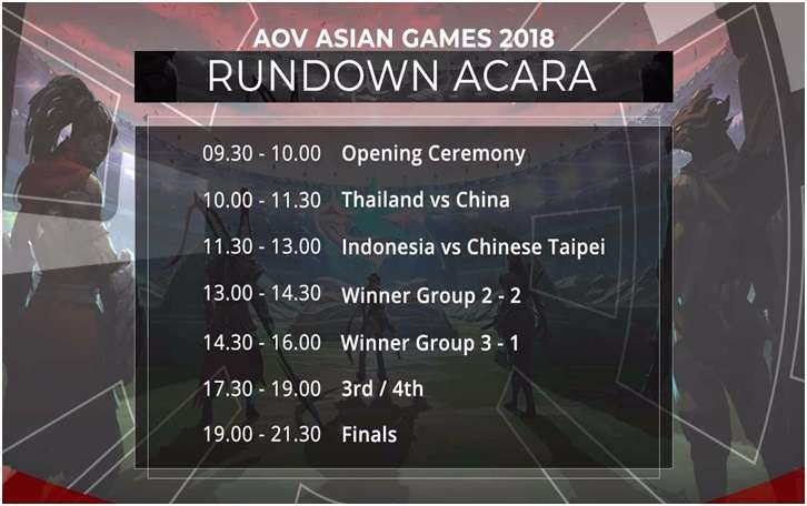 Rundown acara lengkap AOV Asian Games 2018 dapat kalian temukan di gambar berikut: