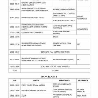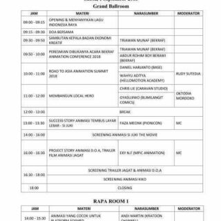 “Untuk meningkatkan industri kreatif dan ekonomi kreatif di bidang animasi dan menguji hasil dari penyusunan Grand Strategy sub sektor animasi dan melengkapi database yang berkaitan dengan animasi dari pendidikan dan industrinya dibutuhkan kegiatan yang berhubungan dengan promosi animasi Indonesia, “ujar Wakil Kepala Badan Ekonomi Kreatif, Ricky Joseph Pesik.