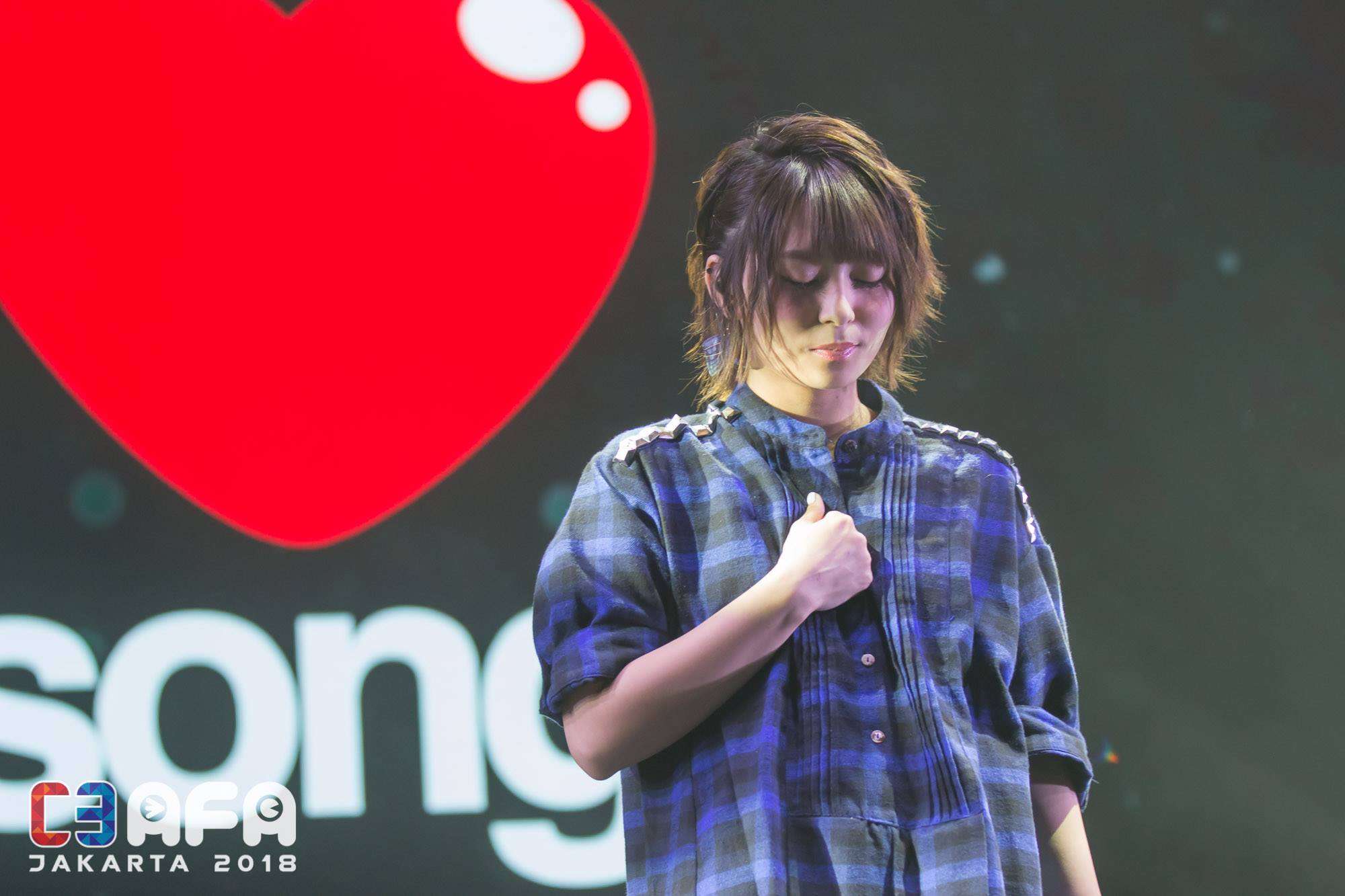 Setelah Band-Maid, Megumi Nakajima kemudian naik ke atas panggung. Ia tampil membawakan lagu “What ‘bout my star?” yang membawa penonton bernostalgia dengan anime Macross Frontrier yang tayang pada tahun 2007. Dia lalu membawakan lagu pembuka dari Netjuu no Susume berjudul “Saturday Night Question” dengan nada yang catchy. Penampilan dari penyanyi dan seiyuu kondang ini dihiasi dengan lightstick berwarna hijau yang dialunkan dengan baik oleh penonton hingga lagu terakhir, berbeda dengan Band-Maid yang didominasi warna merah yang sangat nge-rock. Megumi Nakajima memberikan kesan tersendiri kepada penonton terutama penggemar beratnya, sampai-sampai ada penonton yang mengatakan bahwa menonton konsernya secara langsung merupakan salah satu achievement dalam hidupnya. Kemudian dia membawakan dua lagu tema pembuka yaitu “TRY UNITE” dari anime Rinne no Lagrange dan “Bitter Sweet Harmony” dari anime Sunoharasou no Kanrinin-san yang baru saja tayang pada bulan Juli 2018. Di sela penampilannya, dia menyapa penggemar Indonesia lalu bertanya kepada penonton, “Bahasa Indonesianya ‘oishii‘ apa?”. Penonton pun dengan kompak membalas “ENAAKK”, kemudian dia meminta penonton mengikuti isyarat jari ala metal ke atas yang menujukkan bahwa malam ini akan menjadi malam yang keren. Empat lagu terakhir yang dibawanya adalah lagu pengisi anime Macross yaitu “Anata no Oto”, “Ao no Ether”, “Houkago Overflow” dan “Seikan Hikou”.