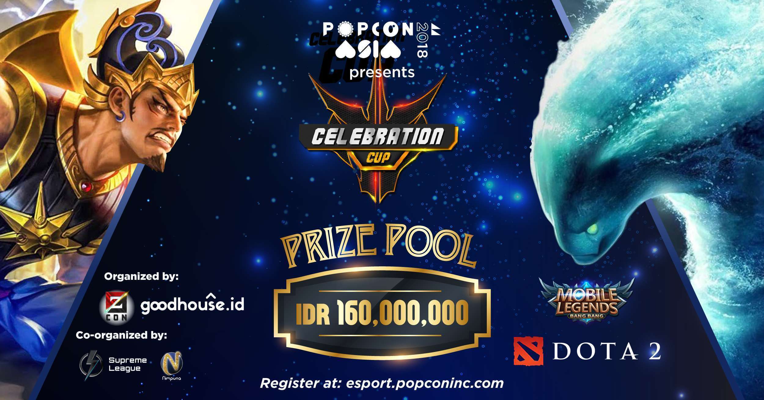 Bertepatan dengan momen film Dreadout yang akan bisa disaksikan di layar lebar pada tahun depan, AGCON berkolaborasi dengan goodhouse.id dan dibantu oleh Supreme League dan Nimpuna untuk menghadirkan kompetisi games online alias eSports yang diberi nama “Celebration Cup”, untuk pertama kalinya di POPCON Asia 2018. Ada dua game yang akan dipertandingkan di Celebration Cup, Mobile Legends: Bang Bang dan DOTA 2. Siapa saja dapat mengikuti kompetisi dengan total hadiah Rp 160 juta ini dengan mendaftar di laman esport.popconinc.com. Untuk pendaftaran DOTA 2 paling lambat tanggal 6 September dan Mobile Legends: Bang Bang pada tanggal 13 September.