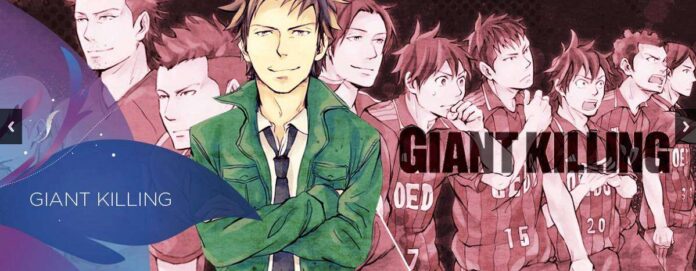 Giant Killing diangkat dari Komik berjudul sama karya Masaya Tsunamoto selaku penulis dan Tsujitomo selaku ilustrator. Bercerita mengenai perjuangan Takeshi Tatsumi (Seiyuu : Salman Borneo) dalam mengelola klub sepakbola East Tokyo United (ETU) yang tengah terpuruk. Komiknya sendiri pernah mendapatkan penghargaan Kodansha Manga Award pada tahun 2010 untuk kategori Best General Manga.