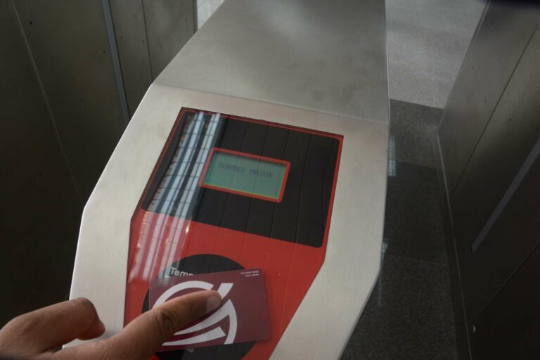 Suasana sangat berubah ketika kami memasuki lantai atas Stasiun Velodrome ini. Hawa sejuk terpancar dari dalam stasiun dikarenakan posisi kami berada di atas. Segala macam peralatan seperti mesin tiket otomatis dan gate untuk memasuki peron stasiun pun sudah dipasang dengan apik dan rapih. Namun, terdapat kekurangan di bagian gate untuk melakukan tap in di mana sistem sensor pada gate tap in kurang memuaskan. Kami harus benar-benar meletakkan kartu tiket seperti KMT ini dengan posisi yang lurus.