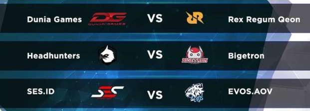 Enam tim AOV yang akan membuka ASL musim ini terdiri dari Duniagames, Rex Regum Qeon, Headhunters, Bigetron, SES.ID dan EVOS. AOV. Sementara itu, Tim GGWP.ID yang juga bergabung di ASL Season 2 ini akan bertanding di pekan depannya. Berikut adalah braket pertandingan untuk hari Minggu: