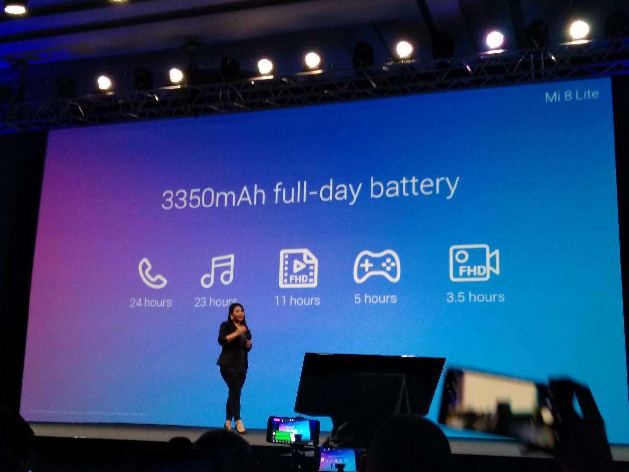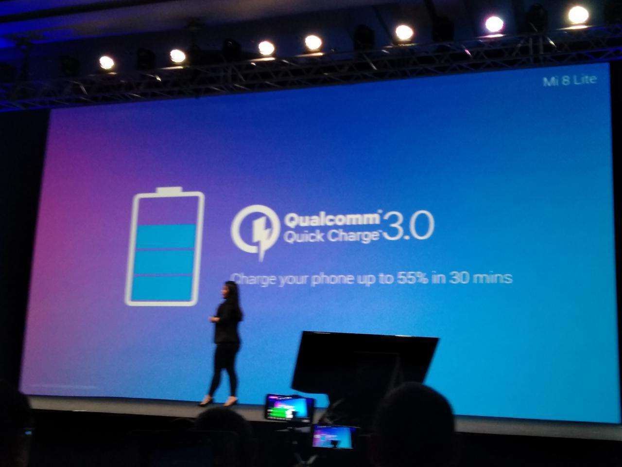 Mi 8 Lite memiliki baterai 335omAh dan mendukung Qualcomn Quick Charge 3.0. Smartphone ini juga menawarkan AI pembuka kunci dengan wajah dan sensor sidik jari di bagian belakang, sehingga dalam hal pengamanan perangkat akan menjadi pengalaman yang mudah. Mi 8 Lite tersedia dalam warna Aurora Blue dan Midnight Black dalam versi 4GB+64GB.