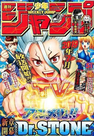 Seakan menjawab penantian para fansnya, serial komik Dr. Stone karya Riichirou Inagaki (Eyeshield 21) dan Boichi (Sun-Ken Rock) akhirnya akan diadaptasi menjadi serial anime! Diumumkan lewat volume ke-51 majalah Weekly Shonen Jump, serial anime Dr. Stone rencananya akan tayang pada Juli 2019. Seiyuu utama di animenya juga telah terungkap, di mana Yuusuke Kobayashi akan berperan sebagai Senku.