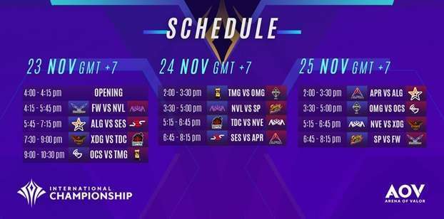 Di hari pertama pada tanggal 23 November 2018, Indonesia yang diwakili oleh Tim SES akan berhadapan dengan Tim Allegiance dari Amerika Utara pada pukul 17:45 – 19:15 WIB sore hari. Kemudian, pada tanggal 24 November 2018, Tim SES akan bertanding melawan Tim ALPHA Red dari Thailand. Berikut adalah jadwal lengkap pertandingan pada tanggal 23-25 November 2018 yang tidak boleh kalian lewatkan: