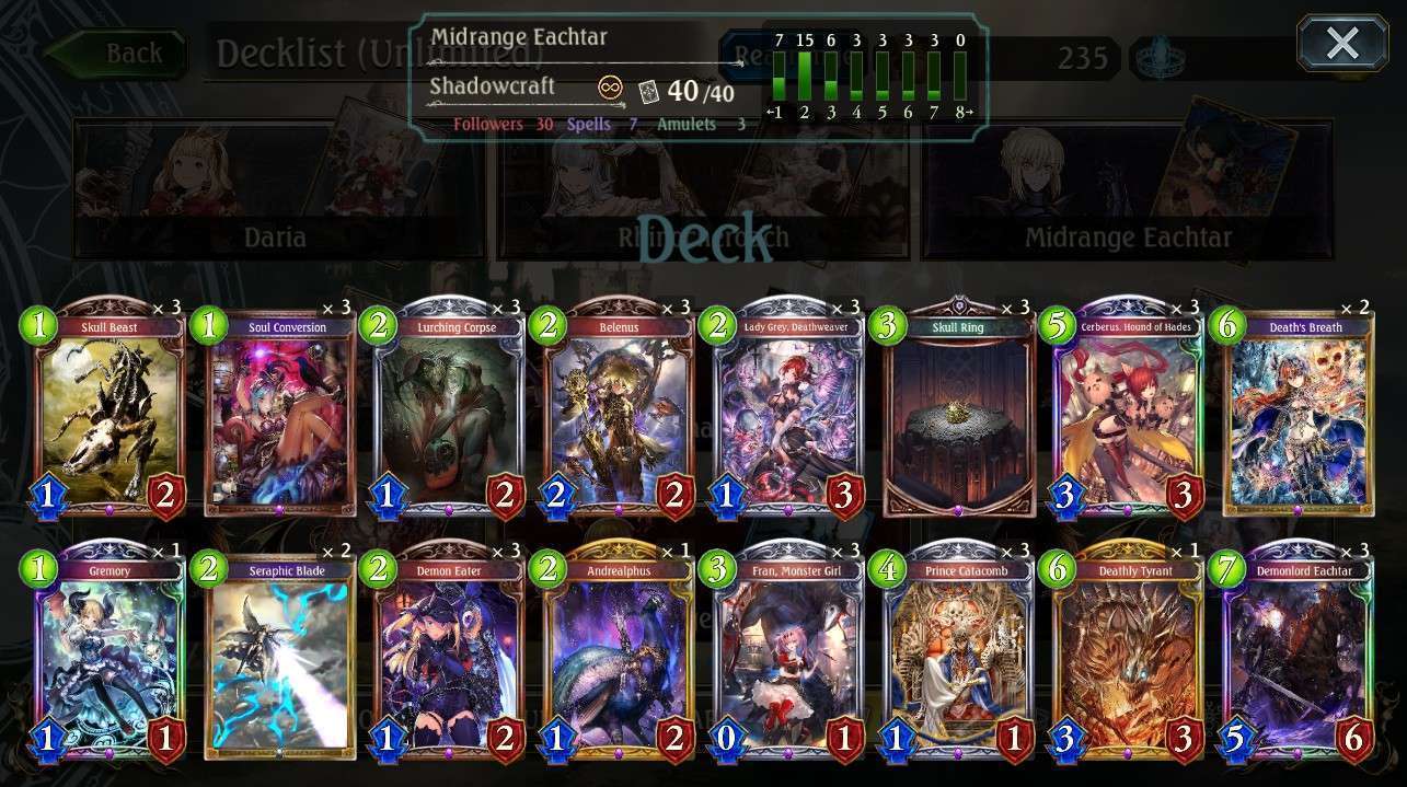 Tipe deck ini sangatlah flexibel. Kalian bisa memainkan deck Midrange secara defensive maupun agressif. Kalian bisa saja memutarbalikkan board untuk mencounter serangan lawan dengan kartu-kartu yang mempunyai efek clearboard, ward, rush, dan lain-lain.