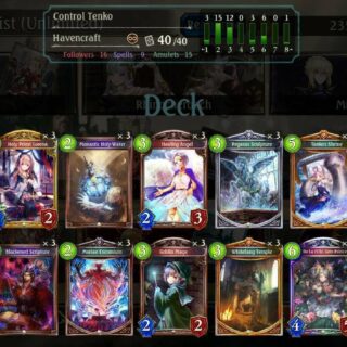 Archetype ini tergolong sangat lambat jika ingin memenangkan Game. tidak seperti Archetype Midrange atau Aggro, deck ini tidak dirancang untuk mengandalkan Curve bagus, Seperti nama Archetypenya. Control, Deck ini diisi oleh kartu yang bisa mengkontrol board kalian secara defensive dari awal permainan, seperti kartu removal kepada lawan, kartu yang bisa mengheal leadermu terus menerus, atau follower yang mempunyai ward. Untuk memenangkan Game ini kalian dipastikan membawa beberapa kartu Finisher yang mempunyai efek sangat kuat. Secara ringkas kalian cukup bermain secara defensive dari awal permainan sampai kalian bisa menggunakan Kartu Finisher pada Momentum yang tepat.