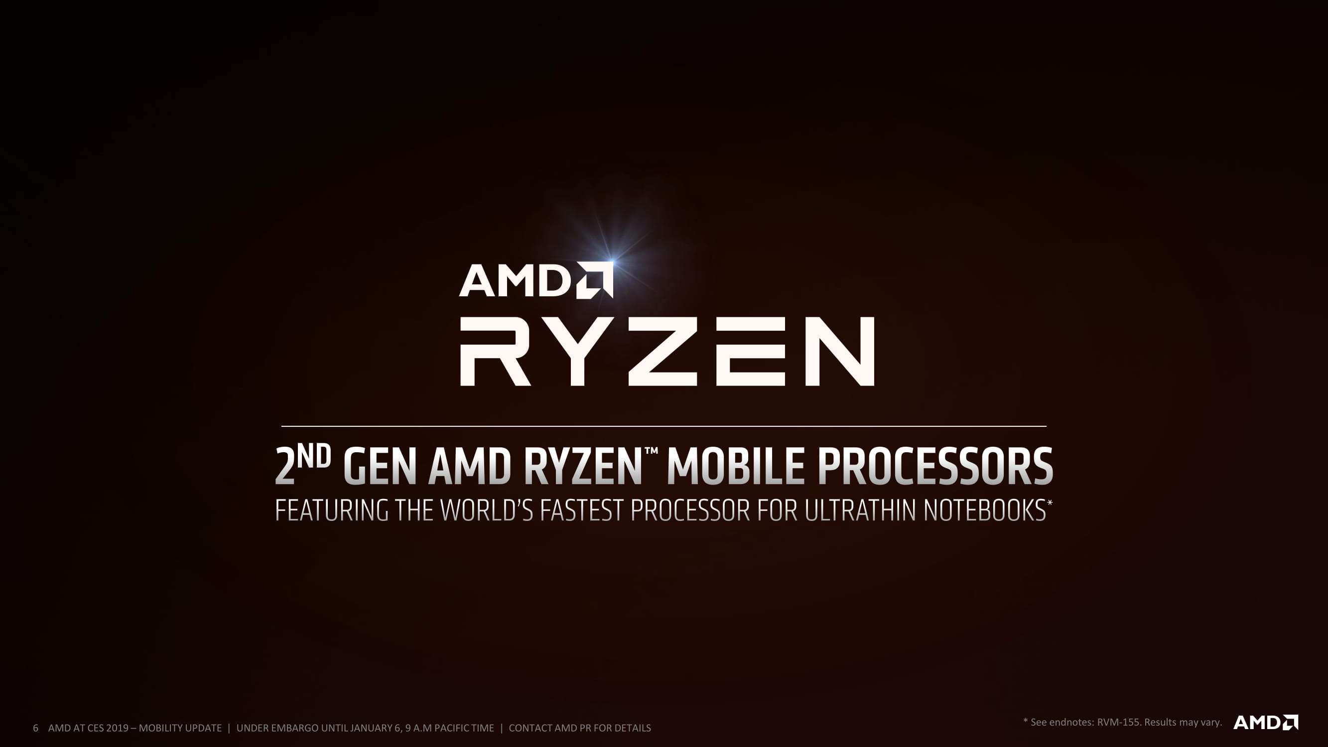 Pada 6 Januari 2019 lalu, AMD mengumumkan anggota-anggota pertama dari jajaran komputer jinjing tahun 2019 nya yang mencakup seluruh segmen notebook: Prosesor AMD Ryzen Mobile Generasi Kedua Seri 3000 yang mentenagai notebook-notebook ultrathin dan gaming; Prosesor AMD Athlon Mobile Seri 300 yang mentenagai notebook-notebook mainstream dengan “Zen” core yang cepat dan efisien; dan prosesor-prosesor AMD A-Series Generasi Ketujuh yang telah dioptimalkan untuk meningkatkan performa Chromebook mainstream. Sebagai tambahan, AMD juga mengumumkan bahwa mulai dari kuartal ini, para gamer, kreator, dan antusias notebook akan dapat menginstal software Radeon™ Software Adrenalin untuk membawa fitur-fitur GPU terbaru dan optimalisasi game ke dalam seluruh sistem yang ditenagai oleh prosesor-prosesor AMD Ryzen™ dengan grafis Radeon™.