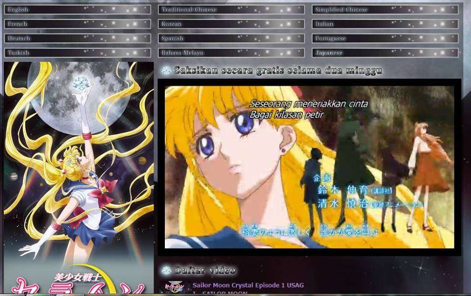 Situs streaming video dari Jepang Niconico yang didapuk untuk menayangkan versi terbaru dari Anime lawas Sailor Moon bertajuk Pretty Guardian Sailor Moon Crystal kini menyediakan layanan teks berbahasa Indonesia dalam situsnya. Selain Bahasa Indonesia, tersedia juga layanan teks dalam Bahasa Inggris, Prancis, Jerman, Turki, Korea, Spanyol, Melayu, Mandarin, Kanton, Italia, Portugis, dan Jepang.