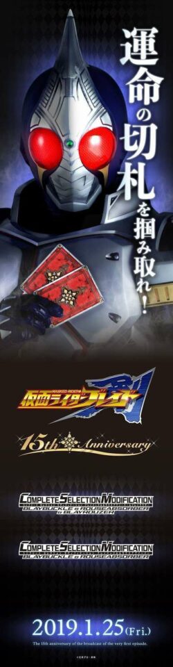 Untuk memperingati 15 tahun tayangnya Kamen Rider Blade, Bandai mengumumkan akan merilis CSM Blay Buckle yaitu alat untuk berubah Kamen Rider Blade dengan skala 1:1 dengan versi di serialnya. Tidak hanya Blay Buckle, Bandai juga merilis pelengkapnya, yaitu Rouse Absorber. Rouse Absorber adalah alat penyerap kemampuan yang dimiliki suatu kartu dan Blayrouzer yaitu pedang yang digunakan oleh Kamen Rider Blade.