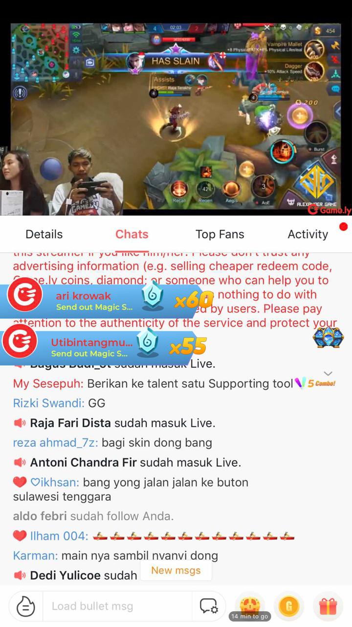 Siaran perdana Young Lex dalam aplikasi Game.ly disambut oleh antusiasme penonton yang mencapai lebih dari 10.000 viewers. Interaksi penonton pun tidak ada habis-habisnya, derasnya pertanyaan-pertanyaan yang diberikan kepada Young Lex, mulai dari permintaan bermain jenis game tertentu, tips dan trik bermain suatu game hingga kisah dibalik kesuksesannya bisa sampai saat ini. Hal ini memperlihatkan besarnya ketertarikan dan keinginan penonton untuk mengetahui kiat-kiat menjadi sukses seperti anak bangsa satu ini.