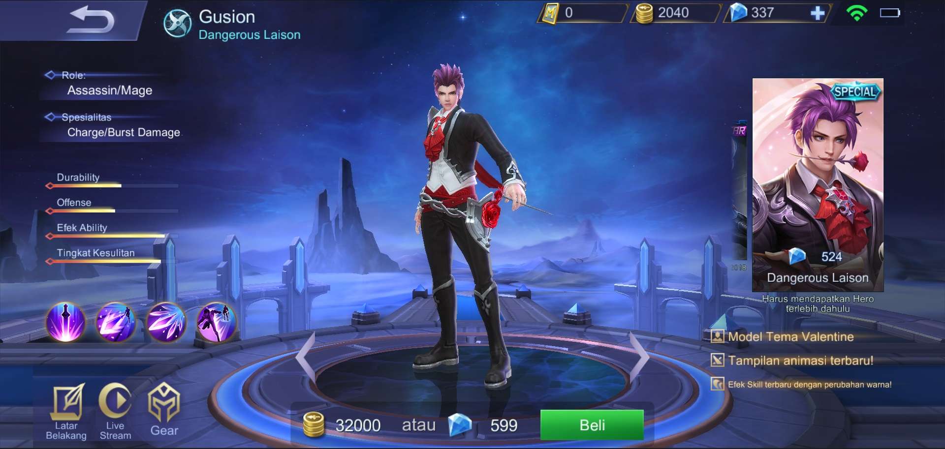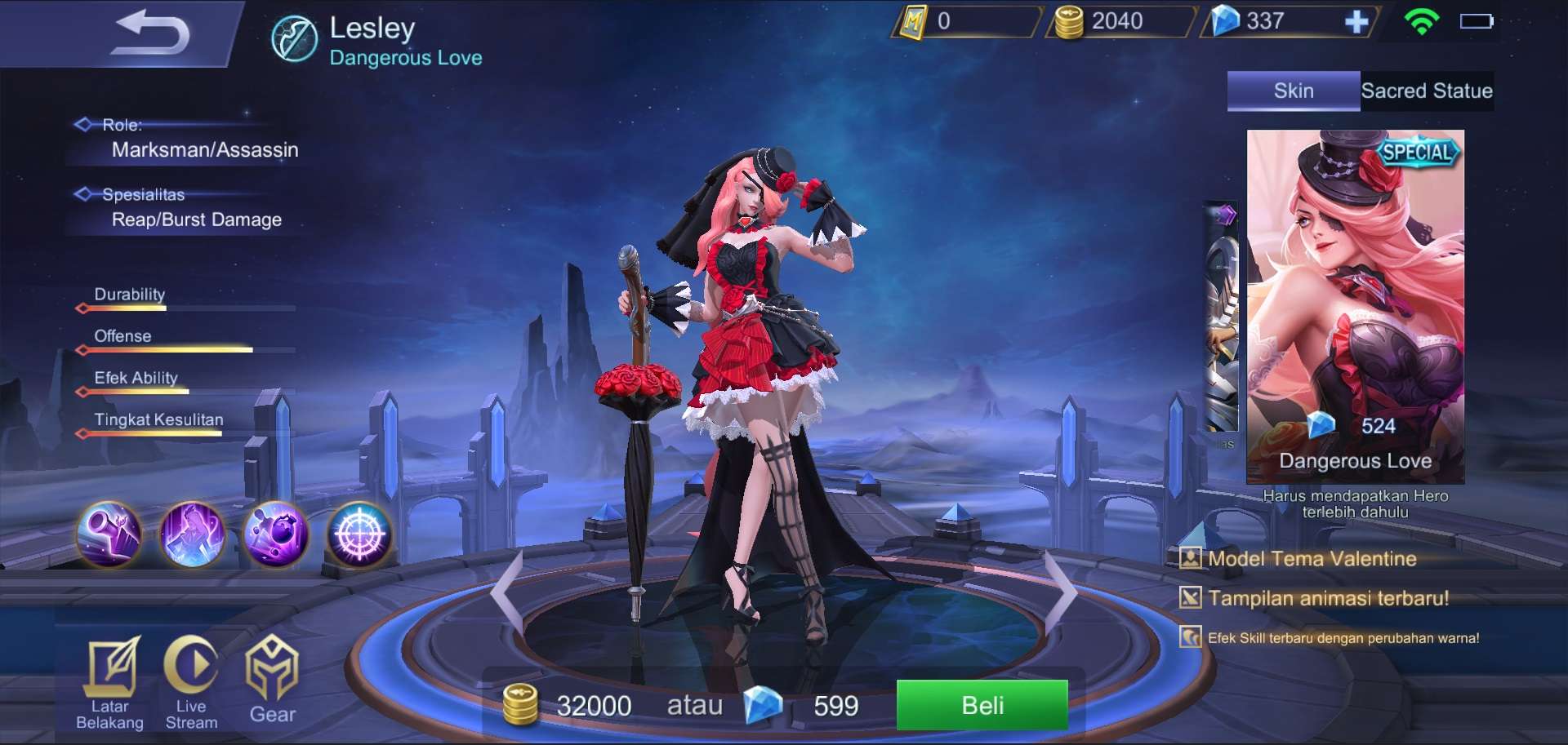 Serta Skin Lesley dan Gusion khusus Valentine akan dirilis tanggal 13 Februari 2019.