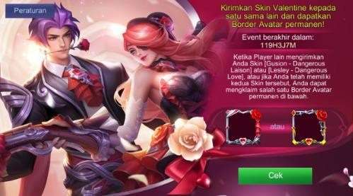 Di bulan Februari ini Mobile Legends: Bang Bang akan kembali memanjakan pemainnya dengan merilis event yang bertema Valentine dan Chinese New Year. Dalam kedua event ini MLBB memberikan kesempatan pada para pemainnya untuk mendapatkan border khusus Valentine secara cuma-cuma.