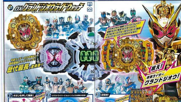 Dan yang terakhir ada form Kamen Rider Grand Zi-O, yang dikatakan sebagai final form sebenarnya. Desain untuk form ini hampir mirip dengan Ohma Zi-O dalam hal warna emasnya. Berbeda dengan Ohma, form ini malah kelihatan lebih mirip dengan form terakhirnya Kamen Rider Decade, Complete Form, yang muncul beberapa dekade yang lalu. Bedanya, kalau Decade Complete Form ada kartu-kartu Kamen Rider yang menempel di pundak dan dadanya sebagai sebuah hiasan, sedangkan di form Grand Zi-O ini Ride Watch-nya yang menempel di dada dan di pundaknya malah digantikan oleh sebuah relief patung-patung kecil yang kelihatannya mirip dengan patung-patung Kamen Rider era Heisei di tugu peringatan pertama perubahan Sougo sebagai Zi-O. Dengan mengakses Grand Zi-O Ride Watch ini di Ziku Driver, Sougo akan bisa mengakses final form terkuat ini dengan memanfaatkan kekuatan para sesepuh Heisei Kamen Rider. Dirilis di bulan Juni yang akan datang, DX Ride Watch Grand Zi-O akan dijual sama dengan Woz Ginga dengandengan 3.200 yen (sekitar 416 ribu rupiah) untuk satu setnya.