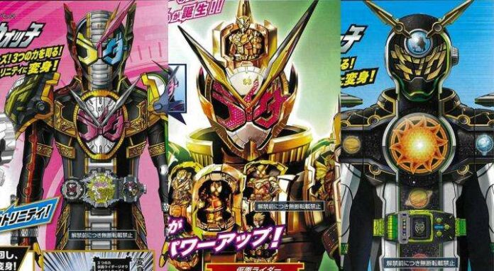 Pertama ada Kamen Rider Zi-O Trinity yang merupakan form pertengahan Zi-O yang kedua setelah Zi-O II. Form terbaru ini akan baru bisa di akses setelah Zi-O menggunakan Ride Watch baru bernama Zi-O Trinity Ride Watch pada drivernya. Desain kostum dari form Trinity ini akan mengambil ketiga desain dari Kamen Rider utama di seri ini, yaitu Geiz (sebelah kiri berwarna kuning), Woz (sebelah kanan berwarna biru), dan Zi-O (di bagian dada dengan wujud wajah base formnya). Menurut rumor ada yang menyebutkan kalau Geiz, Woz, dan Zi-O akan bergabung menjadi satu agar bisa mengakses form ini. Adapun mainan DX Ride Watch Zi-O Trinity ini akan dijual seharga 3.000 yen (sekitar 390 ribu rupiah) per-itemnya dan mulai dirilis pada Maret nanti.