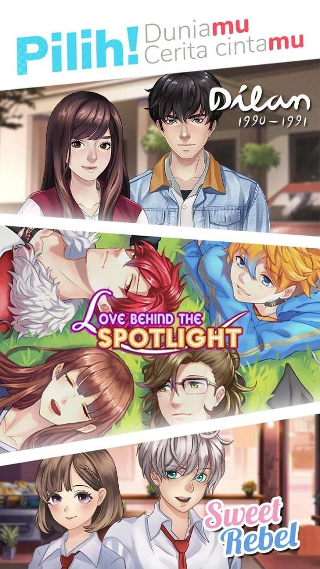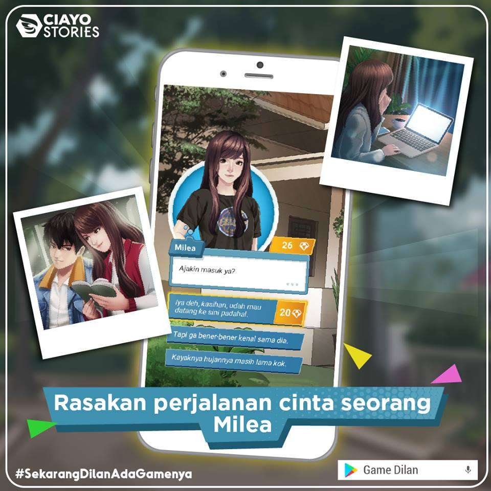 Novel visual Dilan ini hadir dalam platform CIAYO Stories. CIAYO Stories adalah platform pertama untuk permainan novel visual dari CIAYO Corp. Dikembangkan langsung oleh developer Indonesia, langsung untuk ponsel pintar. Temukan berbagai novel visual untuk dimainkan dengan beragam cerita maupun genre. Kini, menikmati permainan berbasis pilihan cerita dapat diakses kapan pun serta di mana pun!