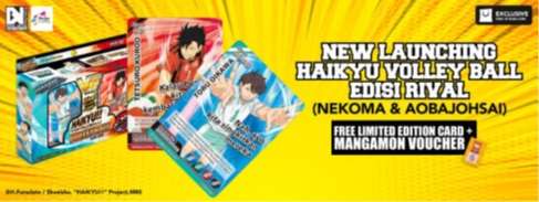 Memenuhi permintaan para penggemar HAIKYU!! di Indonesia, Brain Navi Indonesia merilis produk lanjutan dari HAIKYU!! VOLLEYBALL CARD GAME yang sebelumnya rilis pada bulan Desember 2018. Produk bernama HAIKYU!! VOLLEYBALL CARD GAME Dek Dasar Volume 2: Edisi Rival tersebut pertama kali dirilis di Indonesia pada tanggal 4 Februari 2019 lewat situs jual beli online Blibli.com.