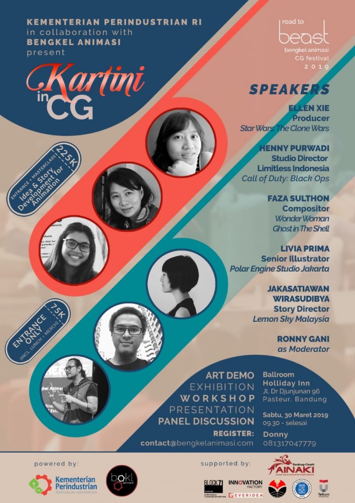 Acara Kartini in CG yang turut didukung oleh Institut Teknologi Bandung, Universitas Pendidikan Indonesia, Telkom University, Block 71, Innovation Factory dan Everidea ini akan diselenggarakan di Ballroom Holliday Inn Bandung pada 30 Maret 2019 mendatang. Tiket bisa dibeli melalui KiosTix.