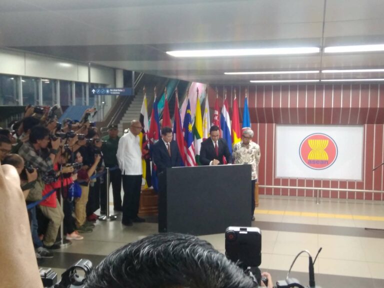 Acara pun dilanjut dengan penandatanganan plakat peresmian nama stasiun MRT ASEAN oleh Gubernur DKI Jakarta, Anies Baswedan, Seketaris Jendral ASEAN, Dato Lim Jock Hoi, dan Wakil Menteri Luar Negeri, Abdurrahman Mochammad Fachir.