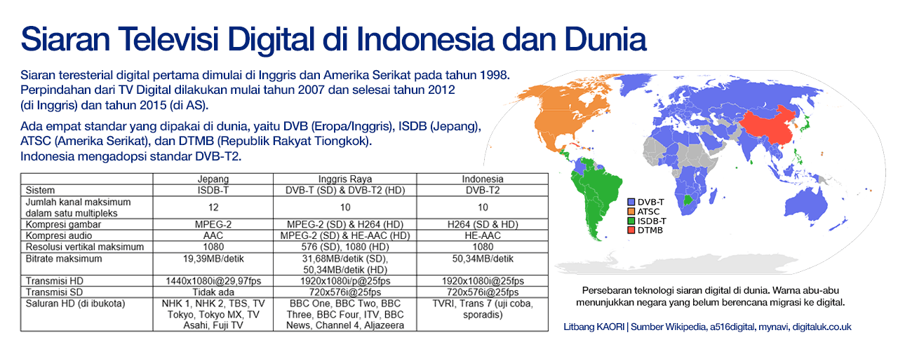 Televisi digital sepertinya masih menjadi barang asing di Indonesia. Padahal siaran televisi konvensional saat ini akan dimatikan tahun 2018. Bahkan masih banyak yang tidak percaya kalau siaran didapat tanpa menggunakan parabola sama sekali.